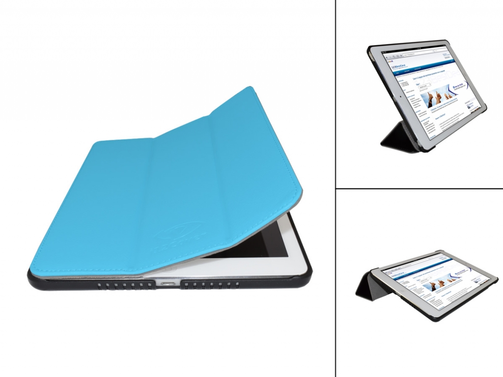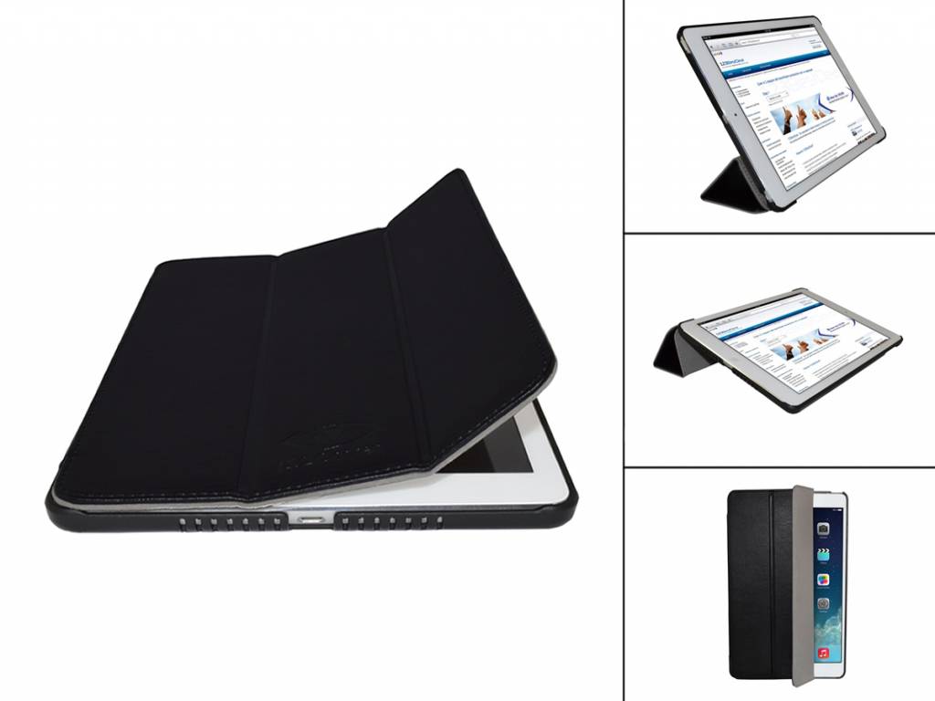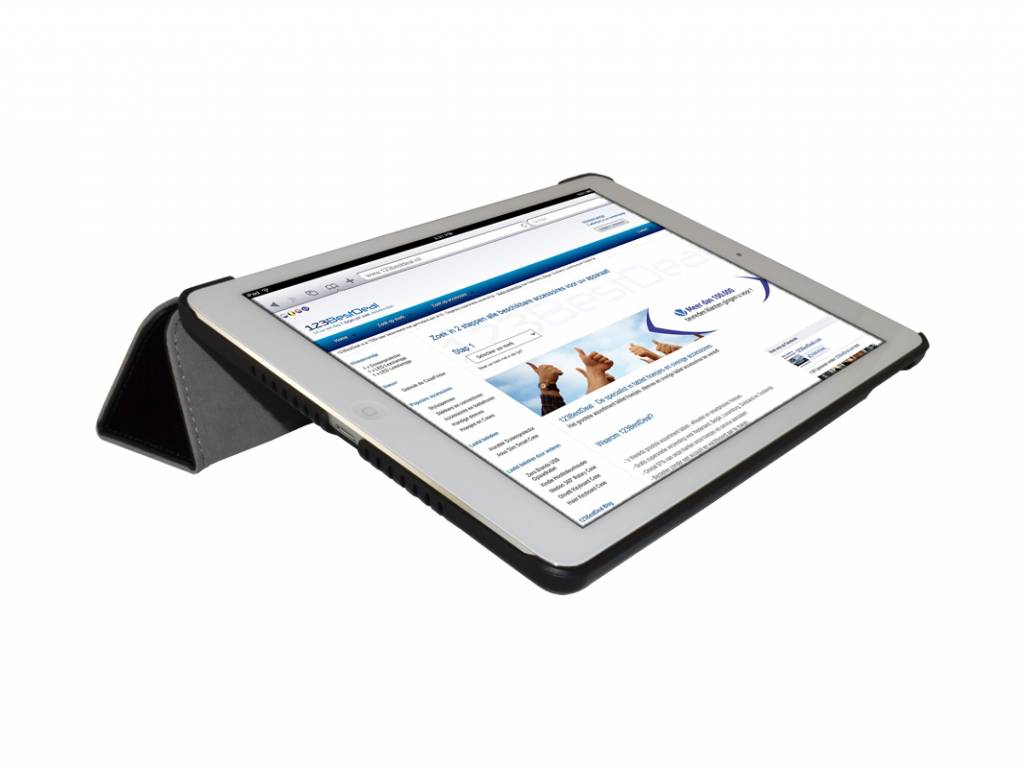 De cover kunt u makkelijk omvouwen tot standaard. Op deze manier kunt u de iPad Air rechtopstaand positioneren voor FaceTime of het bekijken van films en andere media. Vlak neergelegd in toetsenbordpositie kunt u gemakkelijk typen met uw iPad Air.