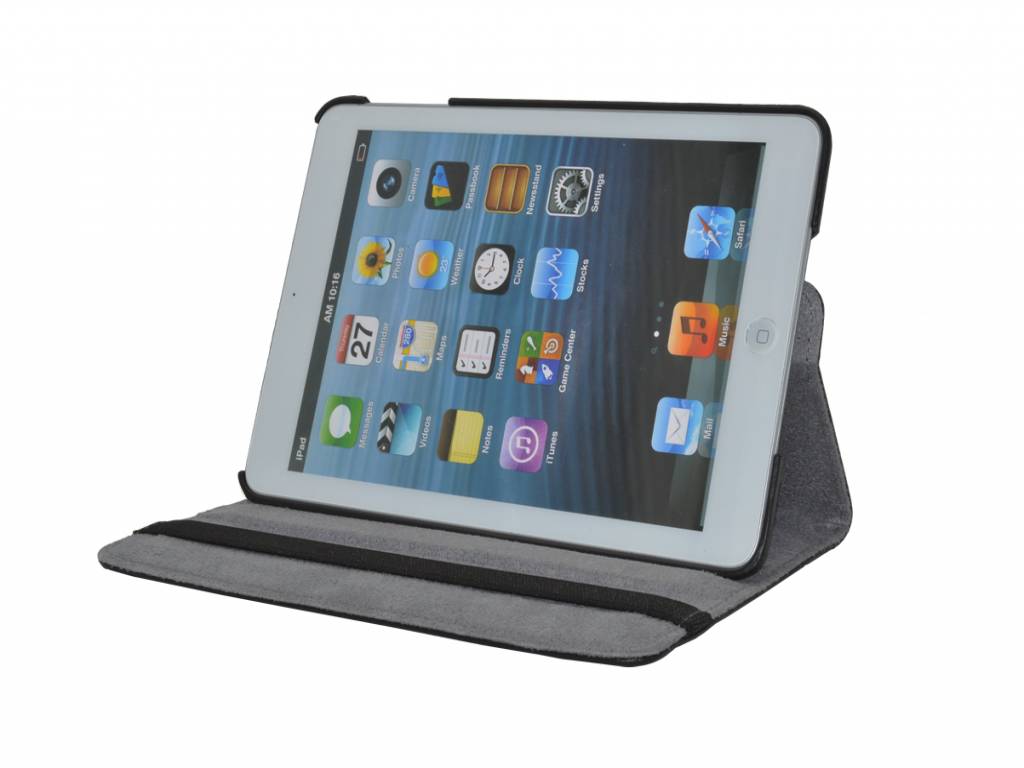 Het is een betaalbare cover waarbij de iPad Mini in de hoes 360 graden draaibaar is. Dit is handig als u de tablet wilt gebruiken in portret of landschap stand. Door de swivel case neer te zetten verandert u de iPad Mini in een fotolijstje of kunt u makkelijk genieten van allerlei soorten media zoals films. De iPad Mini is in deze hoes in twee kijkhoeken neer te zetten.