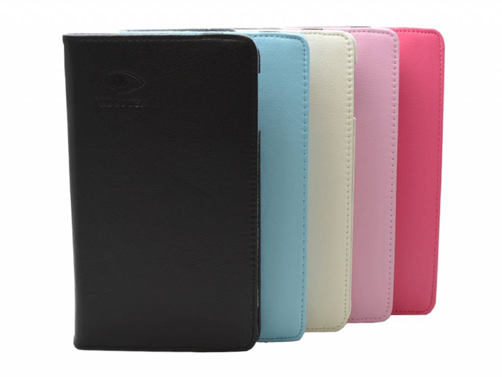 De cover is gemaakt van stevig PU leer. De voering van de cover is gemaakt van stof en zorgt ervoor dat het scherm van uw iPad Mini goed beschermt wordt. De hoes heeft een stevige hard-case aan de binnenzijde, waarin u de tablet kunt vastklikken. Deze is 360 graden draaibaar. Alle uitsparingen zijn aanwezig in de case, zodat de functies van de iPad Mini vrij blijven om te gebruiken.