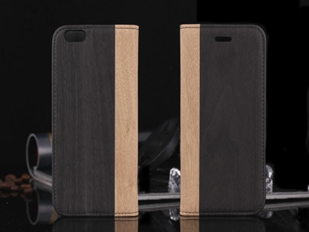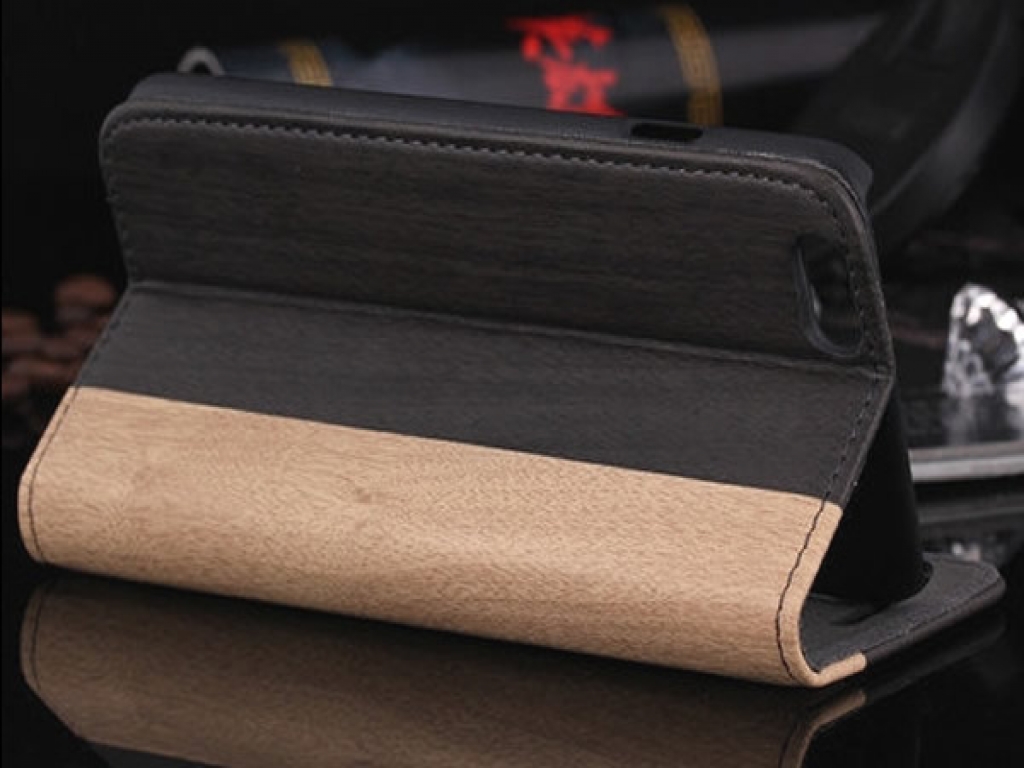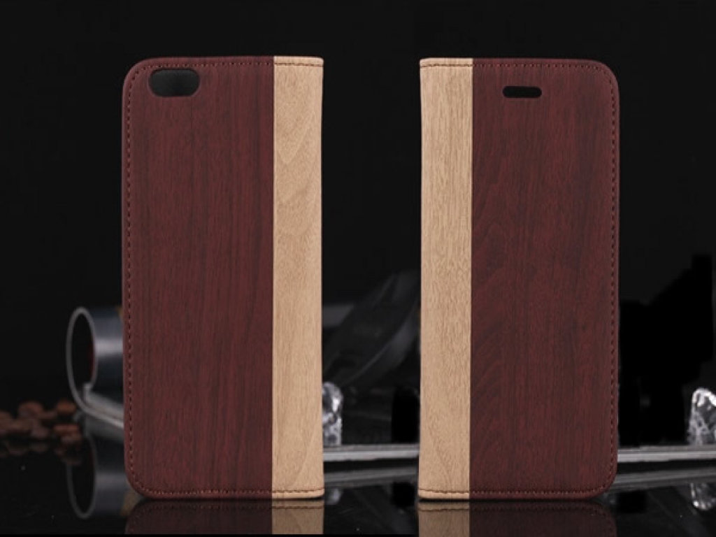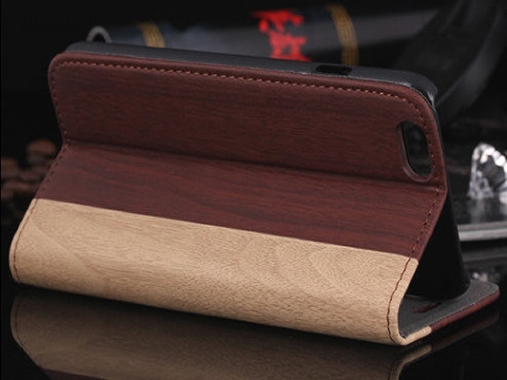 Bestel snel deze Book Wallet Case voorzien van een smaakvol tweekleurige hout stijl opdruk op de cover en geeft uw Apple Iphone 6 de bescherming die het verdient.
