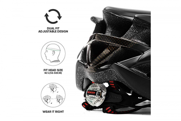 Deze carbon fiber lightweight fietshelm (225 gram) is ideaal voor de bescherming tijdens het fietsen of mountainbiking en maakt u ook duidelijk zichtbaar dankzij het rode achterlicht. Veel ongelukken gebeuren namelijk doordat je van achteren op de fiets wordt aangereden en met dit licht bent u extra goed zichtbaar!