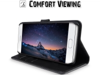 Aan de binnenzijde van de wallet case vindt u drie vakjes voor het opbergen van bankpasjes e.d. Tevens is er een extra compartiment aangebracht om veilig bankbiljetten achter te stoppen.