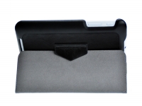 De Asus Memo pad 8 wordt in de hoes stevig vastgehouden met drie beklede buigbare klemmen (twee onder en 1 links) en één uitschuifbare klem in de rechterbovenhoek die over de hoek van de Asus Memo pad 8 valt. Door deze houder ook tegelijkertijd iets op te tillen plaatst u het toestel het gemakkelijkst in de hoes.