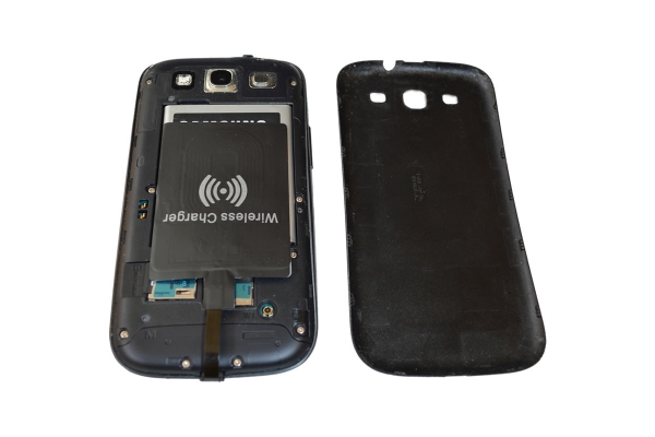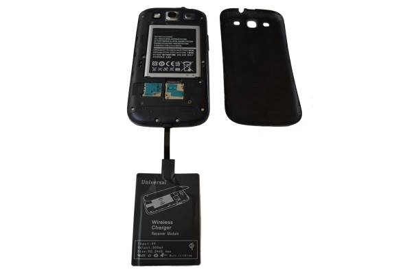 Berg de Qi-ontvanger op onder de batterij cover (wanneer mogelijk) of anders bij in de hoes, zodat u er geen last van heeft.