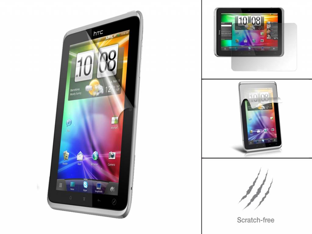 Na het goed aanbrengen is de screen protector nagenoeg onzichtbaar en reduceert deze vlekken en vervelende krassen aan de voorkant van uw HTC Flyer. De functionaliteit en de helderheid van het HTC Flyer scherm worden niet gehinderd.
