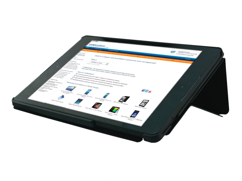 De ingebouwde standaard maakt het mogelijk om uw Nexus 9 in elke gewenste kijkhoek (landschapmodus) te positioneren. Door middel van de rubberen voering aan de binnenzijde van de cover blijft de tablet stevig staan in alle gewenste standen. De multi-stand is hierdoor erg geschikt voor het voeren van Skype-gesprekken of voor het bekijken van filmpjes en andere media.