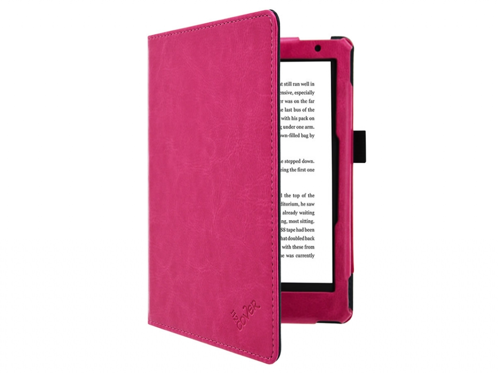 prachtig hoesje makkelijk in gebruik als je even stopt met lezen kan je het dichtklappen en de e reader gaat in ruststand. e reader kan er niet uitvallen doordat het erin geklikt zit.