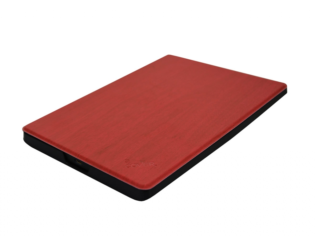 Rode hout motief uitvoering. Het hoesje is ook verkrijgbaar in hemelsblauw en zwart.
