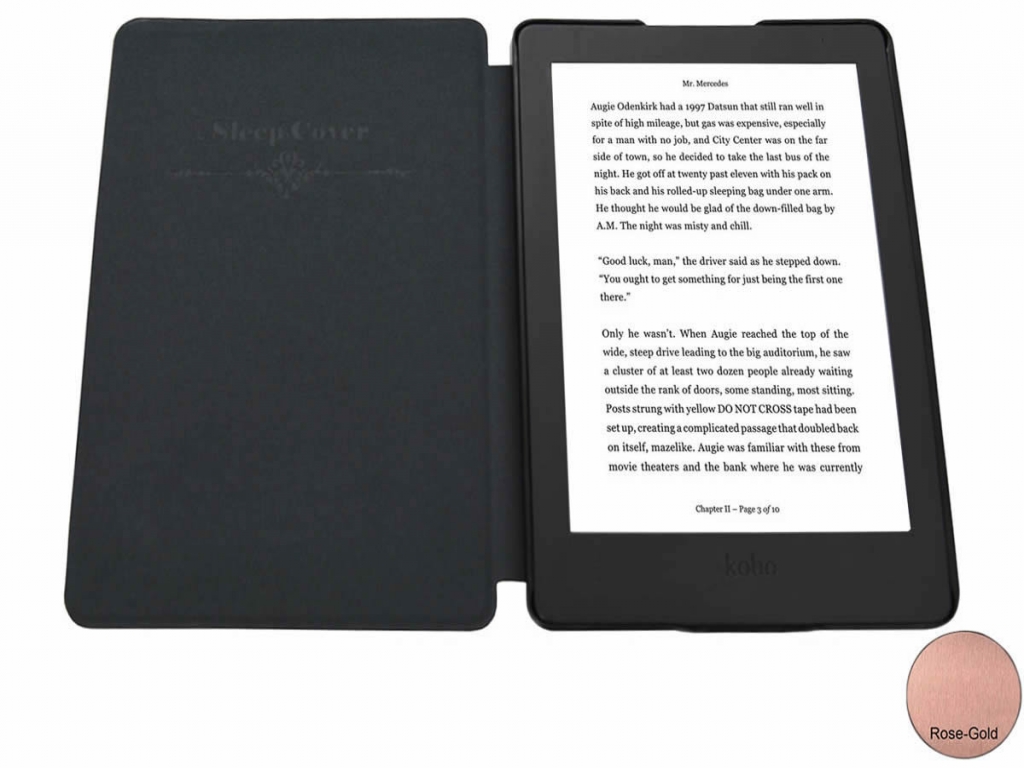NB op de foto is de kleur rose-goud moeilijk vast te leggen, in het echt is de hoes veel mooier van kleur dan op de foto`s en kleurt erg mooi bij uw zwarte eReader.