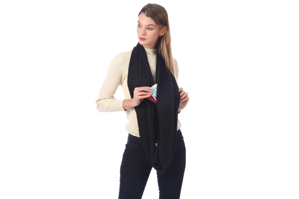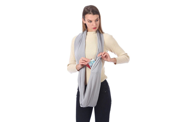 Fashion sjaal met opbergvak/zakje (ritssluiting), Omslagdoek met vak.