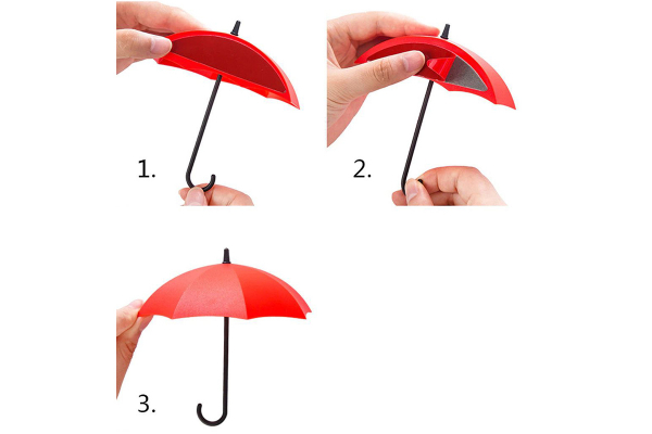 Paraplu Wandhaak/Organizer, zelfklevende set van 3 stuks. Rood/Geel/Roze.