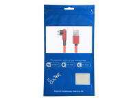 De haakse kabel is ongeveer 100 cm lang en kan gebruikt worden als oplaadkabel en ook als datakabel.