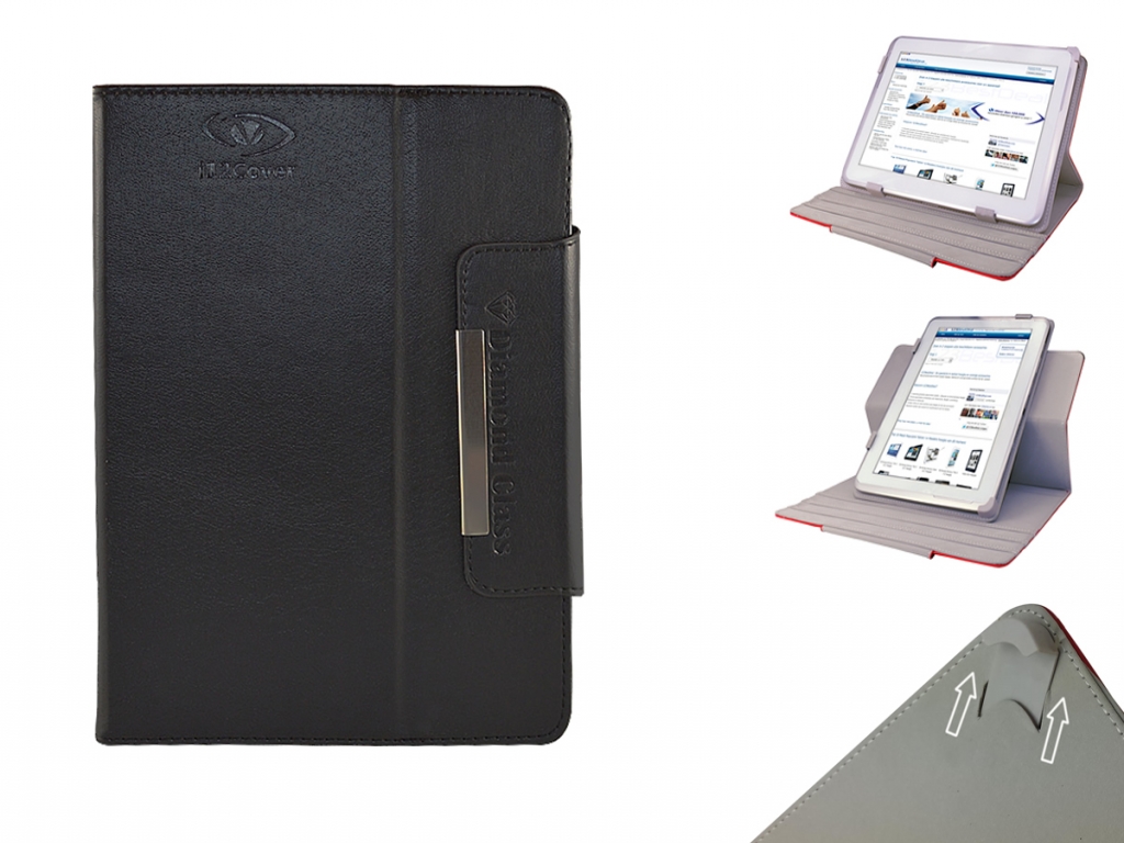 Met een magnetische sluiting kunt u de hoes makkelijk openen en sluiten. De flap aan de voorkant waarmee u de hoes sluit is ook mooi afgewerkt met een metalen strip en het "Diamond Class" logo.