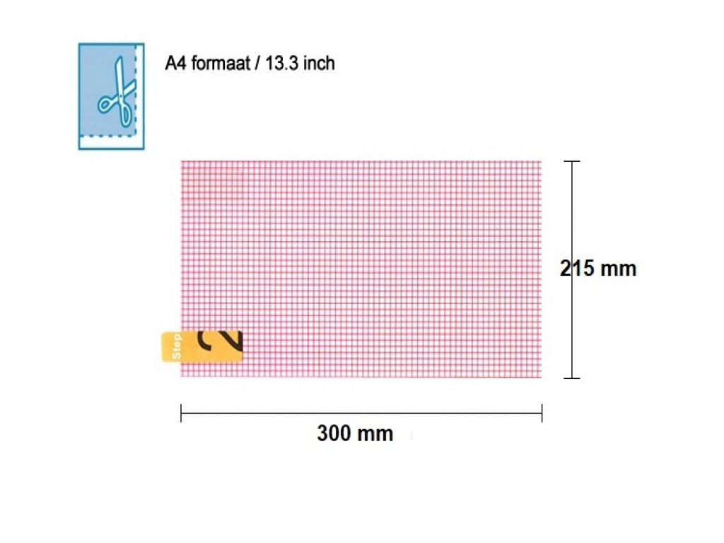 De afmetingen van deze universele A4 screenprotector zijn 300 x 215 mm.