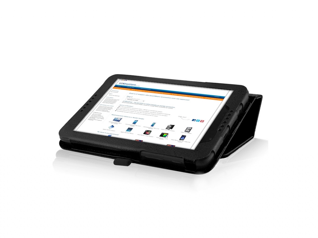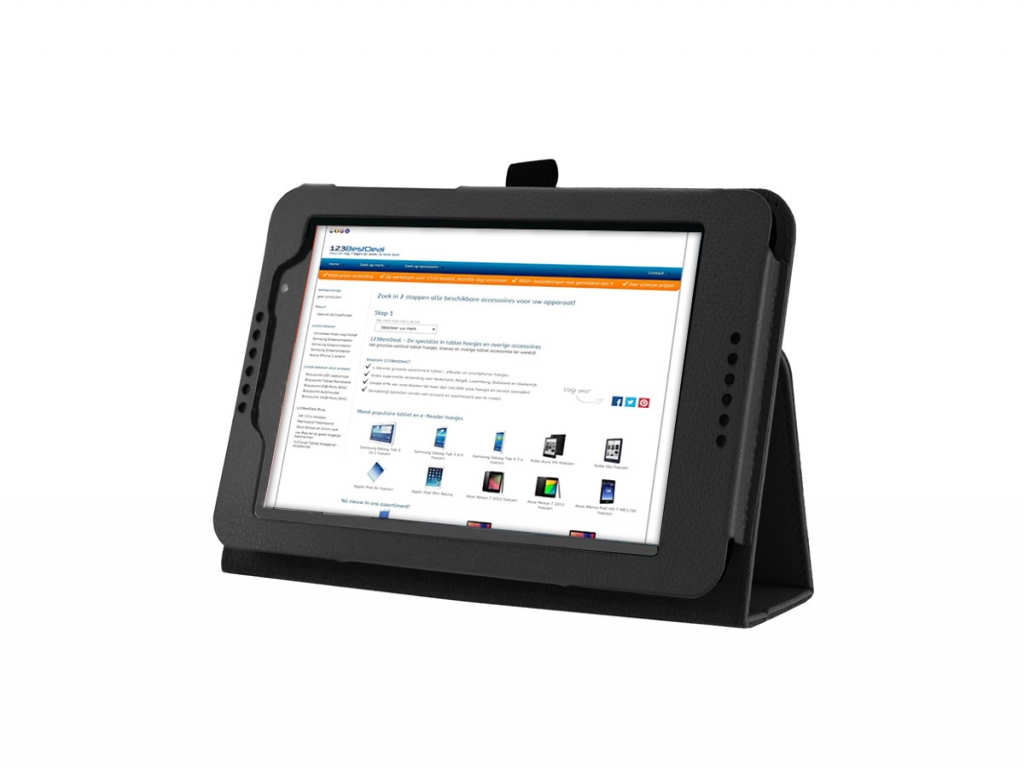 U schuift de Lenovo Tab A7-50 gemakkelijk in een PU leren frame in de hoes. Deze omsluit de volledige tablet. Hierdoor zit uw Lenovo Tab A7-50 stevig bevestigd in de book case. De hoes heeft een magnetische sluiting om te voorkomen dat de cover ongewenst open gaat.