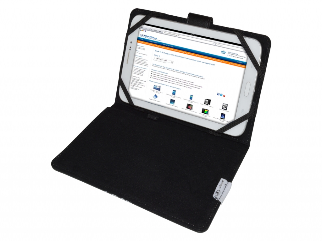 U kunt de Medion Lifetab e10311 md99192 veilig en snel in de hoes bevestigen dankzij een simpel, maar betrouwbaar bevestigingssysteem met twee stevige elastieken banden in elke hoek. In het hoesje zit nog een extra lusje om optioneel een stylus te bevestigen.
