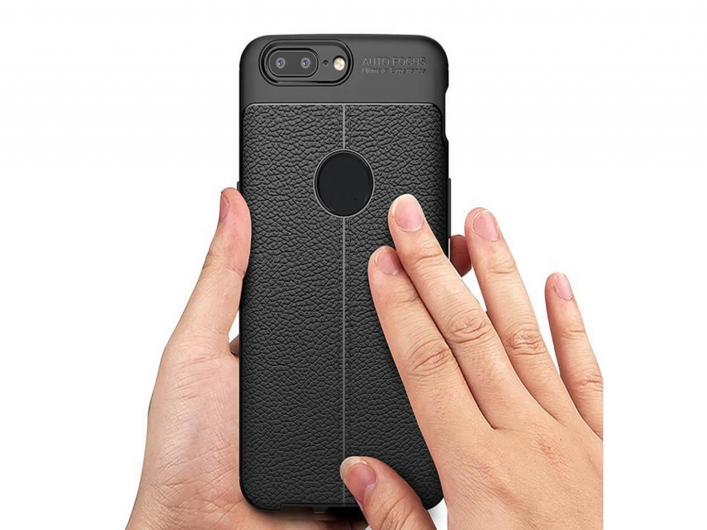 Soft case voor de Oneplus 5t in luxe zwart TPU leer