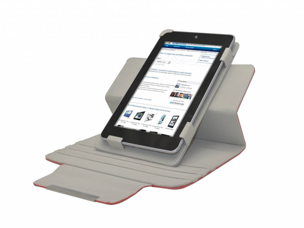 Uitstekend hoesje voor 7 inch tablet met draaiplateau, makkelijk rechtop te zetten