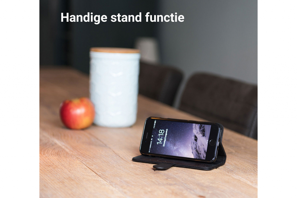 De wallet case heeft een sterke magneetsluiting. Als je de wallet case dichtklapt zorgt de magneetsluiting ervoor dat de hoes gesloten blijft en de telefoon veilig is opgeborgen!