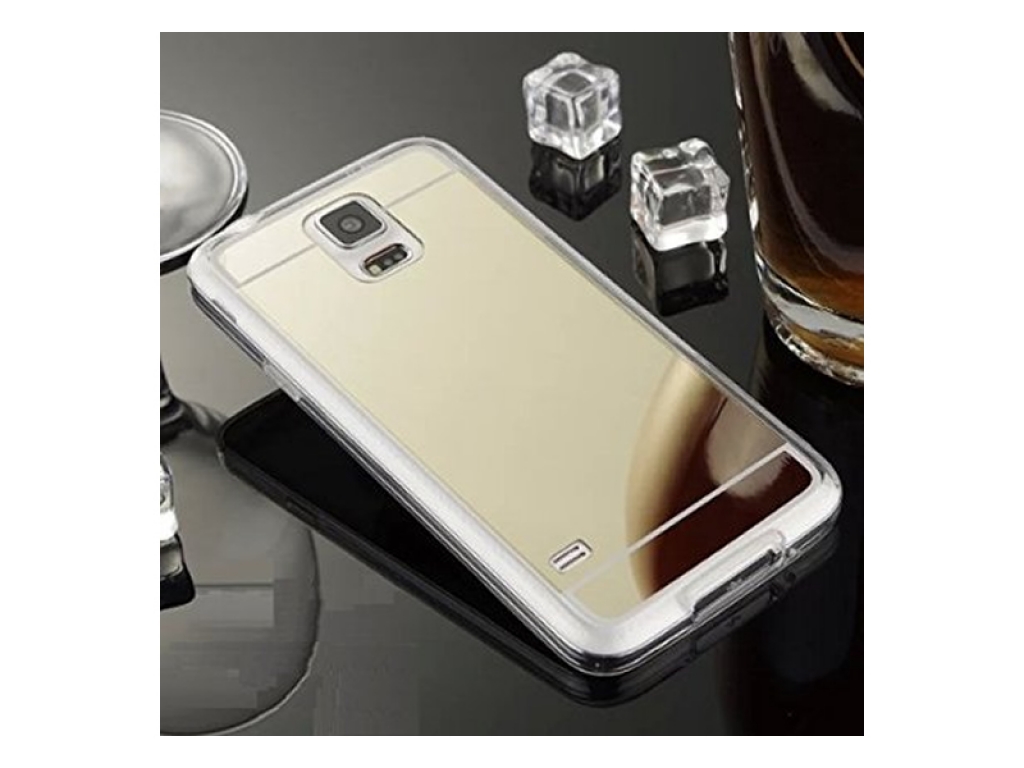 Deze flexibele soft siliconen case is speciaal ontworpen voor de Samsung Galaxy s5. Met dit hoesje beschermt u de Galaxy s5 zonder afbreuk te doen aan het mooie Samsung design. Leverbaar met goudkleurige of zilverkleurige spiegel achterzijde.