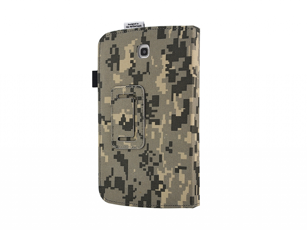 De canvas cover is voorzien van een stoere digitale camouflage print, een soort legerprint in de vorm van ruwe pixels. De camouflage-print geeft de hoes een stoere outdoor look. Dit maakt deze stand case een leuk accessoire voor de echte avonturier.