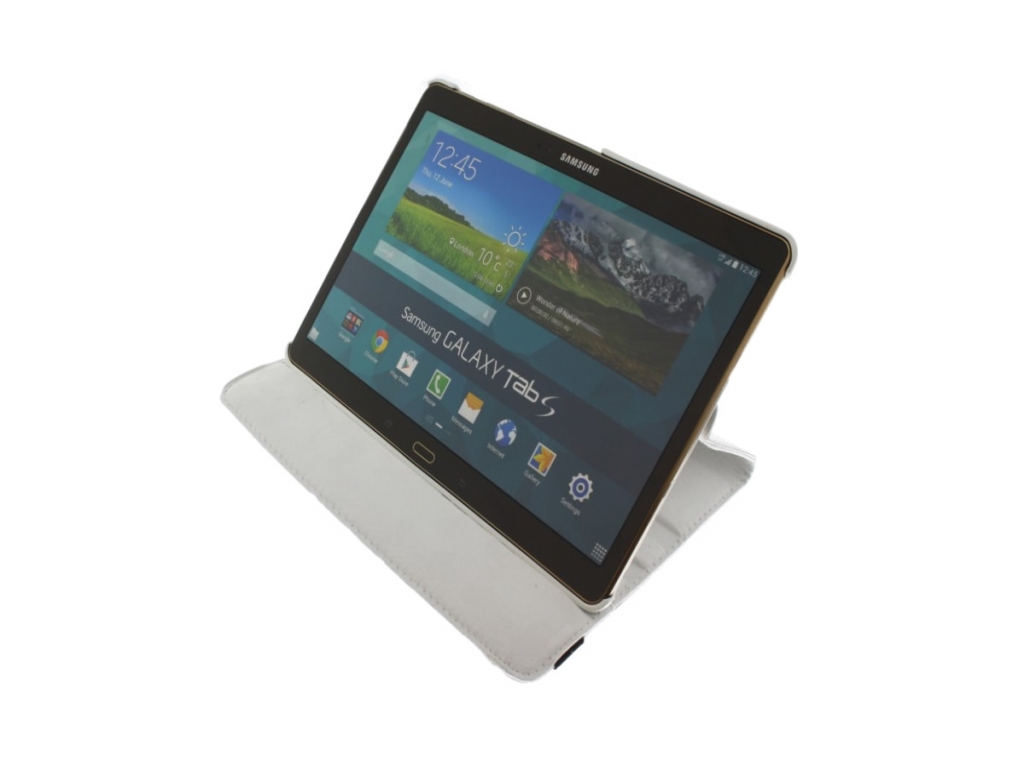 Op zoek naar een (zakelijke) beschermhoes en heeft u behoefte aan een hoes waarin de tablet rechtop gezet kan worden? Deze Samsung Galaxy Tab S 10.5 case met draaistand is dan de perfecte keuze voor u! Bestel nu voordelig online bij 123BestDeal.