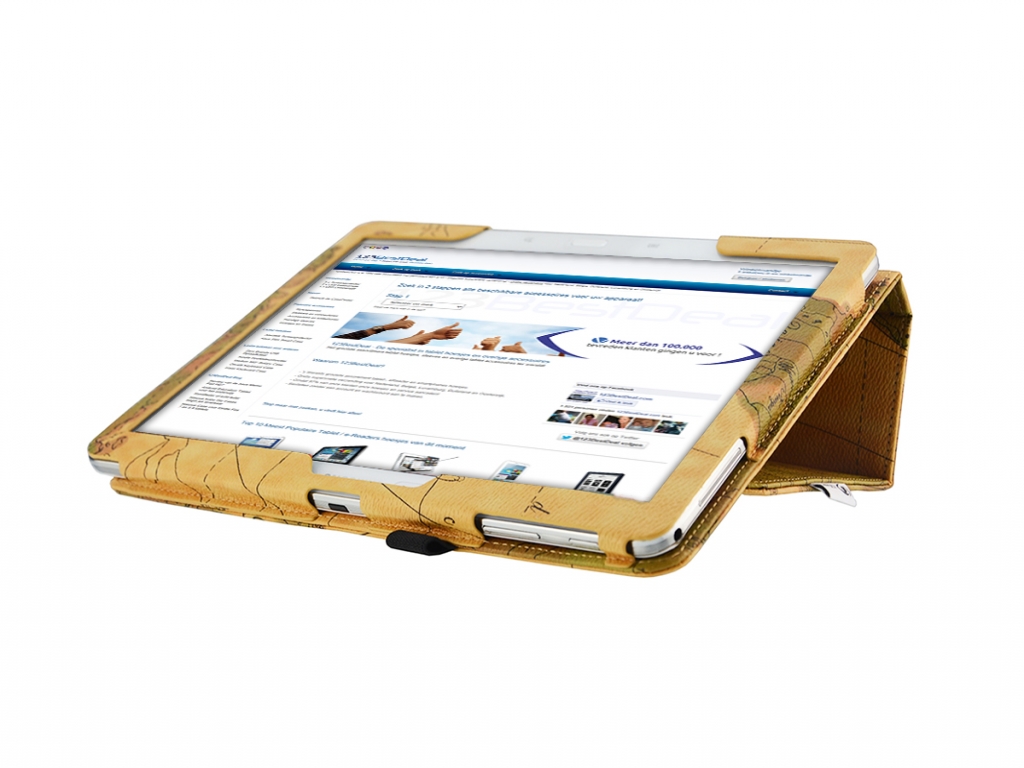 De PU leren cover is voorzien van een mooie opdruk met een deel van de wereldkaart. Deze exclusieve opdruk geeft de book case een smaakvolle retro uitstraling. Een perfecte match met uw Samsung Galaxy tabpro 10.1.