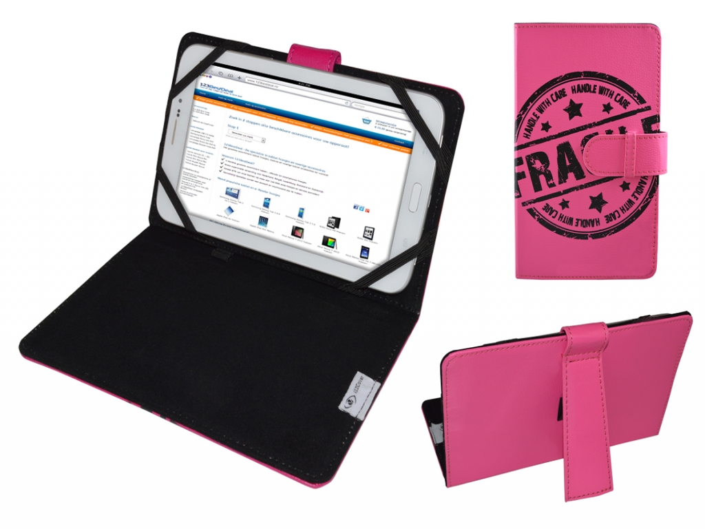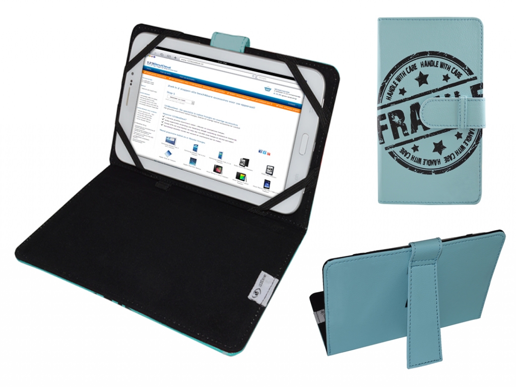 Deze universele PU leren case met een stoere "Fragile" Print op de voorkant is geschikt voor uw Tomtec 9.7 inch.