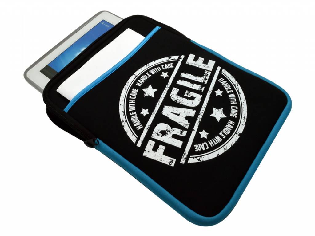 Deze unieke universele sleeve is geschikt voor tablets met een schermformaat tot en met 10.1 inch. De hoes is gemaakt van extra kwaliteit neopreen, een waterafstotende stof waarvan ook duikpakken zijn gemaakt. Hierdoor biedt de sleeve uitstekende bescherming aan uw tablet. Aan de buitenzijde is een sierlijke `Fragile` opdruk geplaatst.