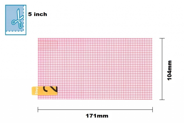 De afmetingen van deze universele 5 inch screenprotector zijn 171 x 104 mm.