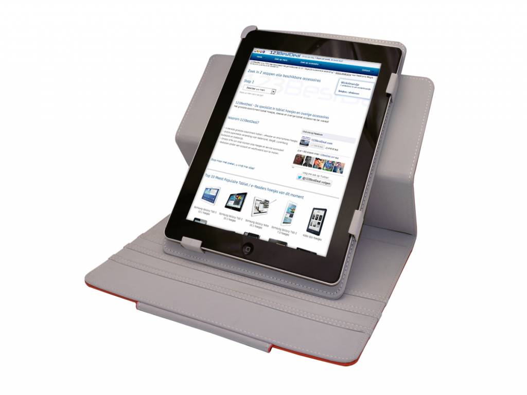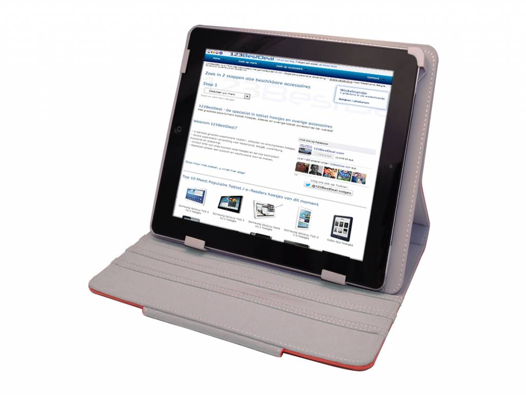 Deze case heeft een Multi-Stand die 360 graden draaibaar is. Dit maakt het mogelijk om het toestel zowel in landschap als portret modus neer te zetten. U heeft hierbij de keuze uit drie standaard kijkhoeken. Door een drukknopsysteem is het binnenste gedeelte uit de hoes te "klikken", zodat er extra makkelijk met de tablet te werken is op momenten dat er geen standfunctie nodig is.
