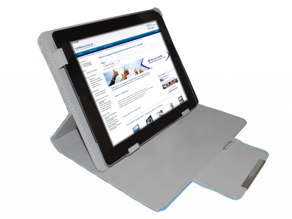 De hoes heeft een handige Multi-stand. Dit maakt het mogelijk om de tablet in landschap modus neer te zetten. U heeft hierbij de keuze uit meerdere kijkhoeken.