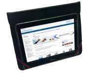 U schuift uw tablet in de sleeve, u vouwt de klep met klittenbandsluiting dicht en uw tablet zit veilig opgeborgen. Allerlei omgevingsinvloeden zoals zon, regen, vocht en stof, hebben nauwelijks nog vat op uw tablet. Als u de standaard gebruikt dan zet u uw tablet neer zoals een fotolijst. U klemt uw tablet achter de twee elastieken banden, zodat hij niet omvalt. Als u met de tablet wilt werken, dan legt u hem vlak neer.