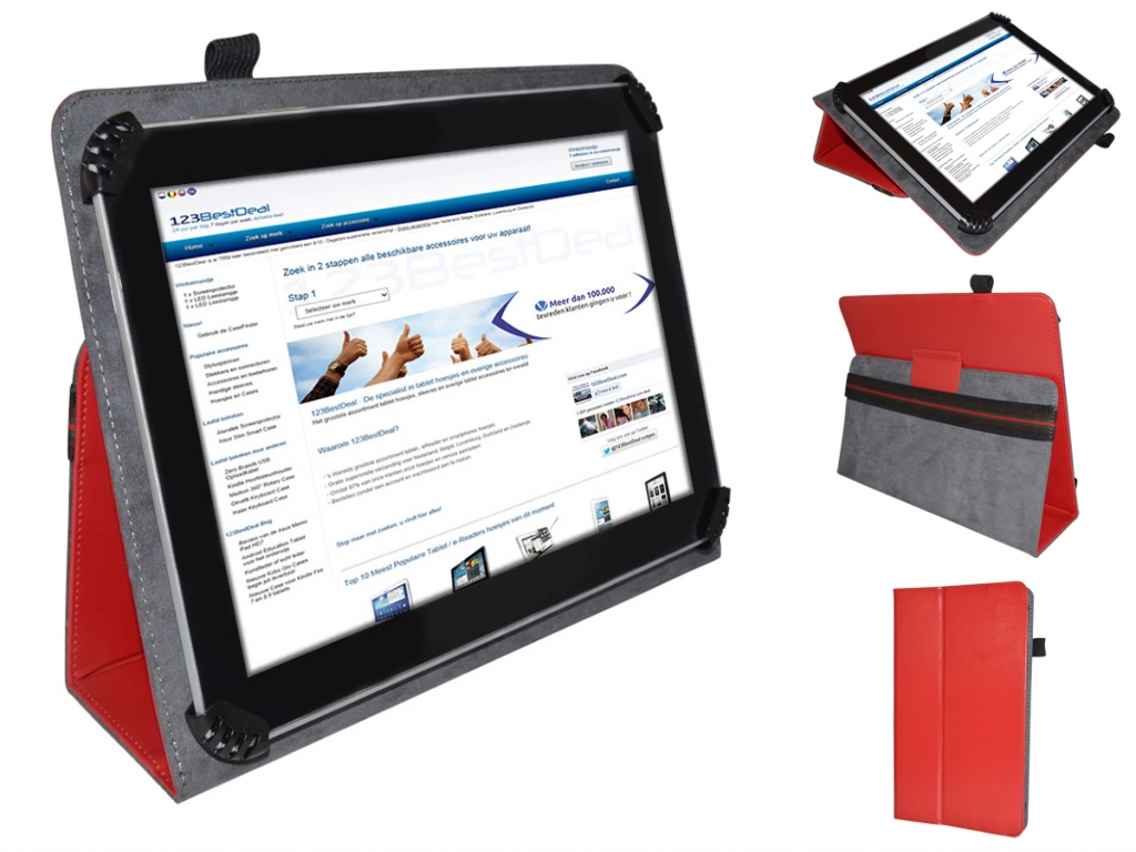 Ons tablet hoesje is verkrijgbaar in diverse mooie kleuren. Van zakelijk zwart en wit, tot trendy en kleurrijk rood, roze en hemelsblauw !